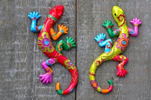 Nástěnná dekorace, která ozdobí každý interiér i exteriér. Barevné dekorativní ještěrky umístěte na stěnu nebo prostě jen položte na terasu nebo k zahradnímu jezírku. Krásná ruční práce.