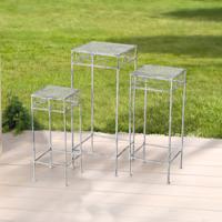 Vystavte své rostliny stylově na elegantních kovových stolcích Lilli! Tato sada obsahuje tři ručně vyráběné stojany, každý zdobený květinami a vroubkovanými detaily ve venkovském stylu. Pevná konstrukce z odolného železa zajišťuje, že každý stojan unese až 20 kg. Díky elegantnímu starožitnému vzhledu jsou tyto stolky ideální pro interiér i exteriér – zahrady, balkony, terasy a další místa. Stolky jsou odolné vůči povětrnostním vlivům, avšak ne v extrémních podmínkách. Perfektní dárek pro milovníky rostlin.