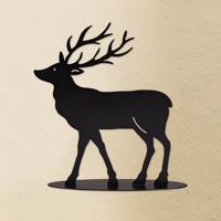 Kovová dekorace v podobě siluety černého jelena zútulní vaši domácnost. Díky podstavci ji můžete umístit do svého interiéru na libovolné místo. Rozměry: 17 x 20 x 4 cm.