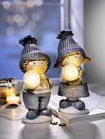 Naše dvojice skřítků se u vás brzy bude cítit jako doma. Ať už na komodě, polici nebo okenním parapetu. Obě dekorativní figurky jsou velmi pečlivě zpracované a bodují kombinací textilních materiálů: vlněné čepice, jemné vousy nebo copánky na dámě, teplé oblečení z plsti... Působivé špičaté čepice sklouzly trpaslíkům přes oči, takže jim koukají jen roztomilé nosíky. Výplň z písku nebo kovový rám Rozměry: cca 12 x 11 x 28 cm + 11 x 11 x 34 cm