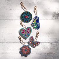 Pětici přívěsků s jarními motivy nejdříve sami vybarvíte, aby mohly udělat radost vašim blízkým, třeba jako talismany pro štěstí. Motivy přívěsků jsou 2 různé květy, motýl, pták a srdce. Pomocí diamantových kamínků z nich vytvoříte krásnou dekoraci, např. na klíčenku. Obsah sady: miska, aplikační pero, voskové lepidlo, 5 řetízků a karabinek zlaté barvy.