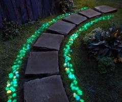 Poté, co vystavíte tyto kameny dennímu světlu, jemně se ve tmě rozsvítí. Nápaditá a kreativní dekorace pro vaši zahradu, terasu či balkon. Kameny rozložte podle vlastní fantazie - do pruhů, vln, kruhů či srdce. Ideální také k označení cesty. V balení celkem 100 kamínků. Vyrobeno z fluorescenčního plastu. Rozměry: 1 kus cca 22 mm.