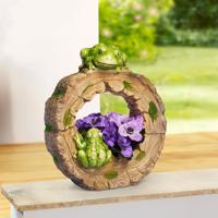 Dvě žáby se uvelebily na plátku stromu, který uprostřed nabízí prostor pro rostliny. Dekorativní květináč ve vzhledu dřeva, je navržen velice detailně. Je vyroben z materiálu magnesium, který je odolný povětrnostním vlivům.