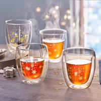 Každou ze sklenic s dvojitými stěnami zdobí na vnitřní stěně pěkný hvězdičkový. Borosilikátové sklo s dvojitou stěnou udrží obsah sklenic obzvlášť dlouho horký - nebo studený, pokud v nich podáváte například ledový čaj nebo ledovou kávu. Zvenku jsou sklenice stále příjemné na dotek - pryč jsou doby, kdy jste si o horké sklenice na čaj popálili prsty. Objem: 300 ml. Rozměry: Ø 9,3 cm, výška 11 cm.