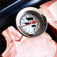 Teploměr Alpina změří a ukáže, zda už má maso ideální teplotu. Pečete a grilujete? Tak to vám teploměr na maso přijde určitě vhod. Na přehledném ukazateli s vyobrazením konkrétního druhu masa a teplotou od 0 °C do 120 °C ukáže, zda už má uvnitř správnou teplotu. Stačí, když v průběhu pečení či grilování zabodnete do masa vpichovací jehlu ze zdravotně nezávadné oceli a ihned budete vědět, jak na tom je. Teploměr je naprosto bezpečnou pomůckou na kontrolu masa v troubě, na grilu či pečeného na pánvi.