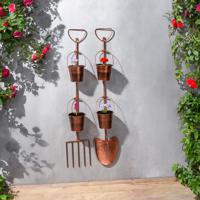 Haushalt international Nástěnné dekorativní zahradní nářadí Rýč a vidle s květináči