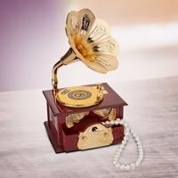 Uložte své šperky do této stylové retro šperkovnice v podobě starého gramofonu. Nostalgický vzhled navíc doplňuje melodie, která začne hrát po otevření zásuvky.