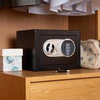Uložte si bezpečně své cennosti do ocelového trezoru s elektronickým zámkem Safeck. S čtyřmístnou číselnou kombinací a 2 klíči pro ruční otevírání poskytuje dvojitou úroveň zabezpečení. Tento kompaktní trezor je vyroben z odolné oceli a nabízí moderní design, který se snadno vejde do vaší domácnosti nebo kanceláře. S LED indikátory a možností nastavení elektronické kombinace (funguje na 4 AA baterie – nejsou součástí balení) je ideální pro uložení šperků, peněz, dokladů a dalších cenných věcí. Součástí balení jsou montážní příslušenství pro instalaci na zeď, ačkoliv je možné ho umístit kamkoliv dle potřeby.