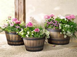 Tyto tři květináče vypadají, že jsou vyrobeny ze dřeva, jsou trvale odolné proti povětrnostním vlivům a snadno se přepravují. Skvělý poutač na zahradě i terase či balkonu. Vyrobeno z vysoce kvalitního plastu. Bez otvoru pro vypouštění vody.Rozměry: Ø 33 x 20,5 cm, Ø 39,5 x 23,5 cm, Ø 44,5 x 26 cm.