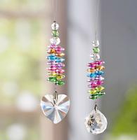 Tyto dekorace jsou známé i jako lapač slunce. Zachycují světlo a proměňují ho v tančící světelné body v barvách duhy. Můžete je darovat jako sadu nebo jednotlivě. Vyrobeny jsou z broušeného skla v nádherných barvách. Včetně dárkové krabičky. Rozměry: Celková délka cca 21 cm. Ø kapky 30 mm, srdce cca 39 x 17 mm.