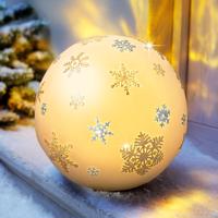 Sněhově bílé náladové světlo s ušlechtilým lesklým dekorem ozdobí obývací pokoj, balkon, terasu, vstupní prostor... Teplé bílé světlo LED krásně vytvoří kulisu v temných zimních dnech. Jednoduše ji nastavte a zapněte - díky provozu na baterie nepotřebujete v blízkosti zásuvku. Sněhové vločky jako filigránské reliéfní motivy, barvené stříbrem a zlatem. Osvětleno 3 LED. S funkcí 6hodinového časovače. Venkovní bateriový box s krytím IP44 (pro 3 x AA baterie, nejsou součástí dodávky). Materiál: poloprůhledný polyresin, odolný proti povětrnostním vlivům. Velikost: Ø 22 cm.
