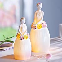 LED porcelánové sošky Dívky s květinami, sada 2 ks