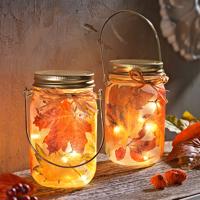Krásné dekorativní světlo vytvoří příjemnou atmosféru na parapetu, polici či v obývacím pokoji. Díky provozu na baterii jej můžete položit kdekoliv, bez ohledu na blízkost zásuvky. Díky funkci časovače se světlo automaticky vypne po 6 hodinách. Tato dekorace je navržena jako klasická sklenice s kovovým víčkem, v němž je diskrétně skrytý prostor pro baterie. 5 teple bílých LED diod osvětluje podzimní listí v oranžovočervených odstínech. Dodáváno včetně závěsu.