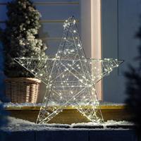 Nepřehlédnutelná zářící hvězda do interiéru i k venkovnímu použití, záleží jen na vás, kde si chcete tu pravou vánoční atmosféru. Kovová drátěná konstrukce je ovinuta 180 mikro LED diodami. Síťový provoz s venkovním adaptérem. Rozměry: 58 x 8 x 58 cm