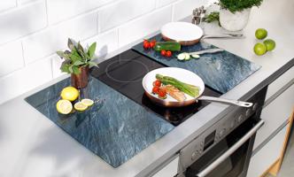 Ochranné krycí desky ve vzhledu „břidlice“ vypadají nejen luxusně, ale hlavně chrání citlivou varnou desku před poškrábáním. Také jsou vhodné jako lapač nečistot za sporák, jako odkládací plocha pro hrnce nebo jako servírovací tác na předkrm či koláčky. Může se použít také jako krájecí prkénko. Krycí desky jsou vyrobeny ze speciálního žáruvzdorného skla a jsou odolné proti poškrábání, s porézním povrchem pro maximální hygienu. Bakterie a pachy nemají šanci. 6 protiskluzových podložek na spodní straně zajišťuje stabilní držení. 2 kusy v sadě, s chladným břidlicovým efektem.