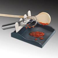 Odkládací stojánek na kuchyňské příslušenství a lžíce. Pohodlné a praktické místo na odkládání použitých pomůcek při vaření. Speciální základna zachytí tekutiny a okolí zůstane čisté. Robustní konstrukce z plastu a silikonu. Rozměry: 12 x 6 cm