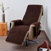 Vaše křeslo bude ještě útulnějším místem s nadýchaným povlakem z čisté ovčí vlny v hnědé barvě. Tento přírodní chránič pokrývá celou sedací a lehací plochu, včetně područek a podnožky. Zahřívá a je velmi pohodlný. Elastické zapínání zajišťuje pevné uchycení, zatímco praktické boční kapsy jsou ideální pro uložení časopisů, kapesníků nebo dálkového ovládání. Lze prát. Rozměry: středová část 200 x 50 cm, chrániče područek 60 x 40 cm.