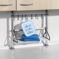 S touto šikovně vybavenou poličkou získáte v kuchyni více prostoru a pořádku. Ať už ji použijete u dřezu, nebo kdekoliv kde potřebujete více volného místa. V nádobě z nerez oceli můžete nechat okapat umyté příbory nebo odkládat kuchyňské pomůcky. Na bambusové polici vznikne zase místo třeba na olej, bylinky či koření. A papírové utěrky najdou své místo na držáku. Doplňující rozměry: nerezová nádoba výška 12,2 cm a Ø 12,5 cm.