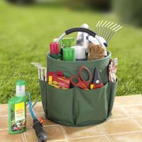 Tento organizér je pro zahrádkáře nepostradatelný! Díky tomuto pomocníkovi budete mít vždy všechno potřebné při ruce – zahradnické nůžky, lopatky, hrabičky atd. Univerzální úložný koš nabízí nejen prostor pro zahradnické pomůcky, je také vhodný pro shromažďování odpadu. Jeden velký košík a 6 bočních kapsiček. S hliníkovou rukojetí. Pro pořádek na zahrádce i v domácnosti. Rozměry: (v x Ø): 280 x 265 mm