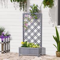Outsunny Dřevěný truhlík s popínací mřížkou, šedý, 60 x 30 x 122,5 cm