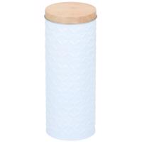 Praktická vysoká plechová dóza v elegantním keramickém designu – ideální na těstoviny či cereálie. Bílá dóza je vybavena skvěle těsnícím bambusovým víkem, což zajišťuje uskladněným potravinám ochranu proti vlhkosti a dlouhodobou trvanlivost. Je vyrobena z kovu a díky pěknému designu bude skvěle vypadat např. vystavená na kuchyňské lince. Naplňte ji například těstovinami a sami uvidíte, jak dlouho vám vydrží čerstvé.