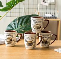 Čtyři hezké keramické hrnky v nostalgickém vzhledu. Každý hrnek je zdoben odlišným obrázkem oblíbeného nápoje – Espresso, Cappuccino, Caffe Latte a Mocca. Perfektní, když vstáváte nebo když chcete dát někomu hezký dárek.Objem: 380 ml Lze použít v mikrovlnce a mýt v myčce.