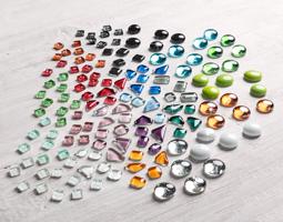 Velká sada kamínků na kreativní tvoření či zdobení rámečků, květináčů, dárkových krabiček, šperků a mnoho dalšího. Obsahuje 400 skleněných kamínků v různých velikostech, tvarech a barvách, některé také se třpytkami. Ve velikostech od cca 0,9 - 1,9 cm.