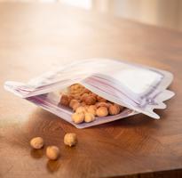 Opakovaně použitelné pevné sáčky na ukládání potravin s dvojitým tlakovým zipem pro vzduchotěsné uzavření. Zaujmou svým vzhledem zavařovacích sklenic a tvarovaným dnem pro snadné postavení a plnění... Oceníte je při skladování těstovin, sušenek, či svačinek na cesty. Po použití můžete sáčky jednoduše vložit do myčky. Když se nepoužívají, zabírají minimum místa. Sada 20kusů ve 3 velikostech: 6 x S, 8 x M, 6 x L • 6 ks - 11 x 16 cm; objem 150 ml • 8 ks - 14 x 19,5 cm; objem 500 ml • 6 ks - 17 x 24,5 cm; objem 1000 ml Materiál: plast