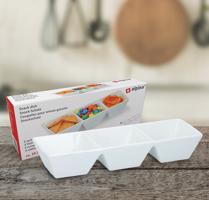 Praktická miska se třemi oddíly je vhodná na servírování cukroví, sušenek, oříšků nebo pomazánek či dochucovadel. Materiál: porcelán. Rozměry (d x š x v ) 29,5 x 10 x 5 cm.