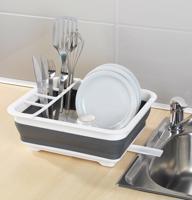 Na tento odkapávač odložíte dostatek umytých talířů, šálků a ve 4 přihrádkách bude také místo na příbory. Při zaplnění je velmi stabilní a pokud se nepoužívá, lze jednoduše složit pro úsporu místa. Materiál: umělá hmota, silikon. Rozměry: složený 36,5 x 13 x 31