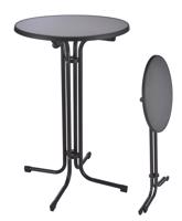 Sklopný barový stolek snadno rozložíte a zase složíte. Pevná ocelová konstrukce a skládací mechanizmus jsou největšími devízami barového stolku Bistro, který je ideální na vnitřní i venkovní akce. Jeho rám má práškový povlak a každá noha stojí na pevné plastové krytce, takže stůl je perfektně stabilní. Kulatá, 1,6 cm tlustá jídelní deska má průměr 70 cm a stůl je vysoký 110 cm. Pokud stůl nepoužíváte, snadno jej složíte a opřete např. ke zdi. Při skladování zabere minimum místa.
