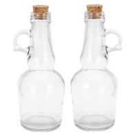 Průhledné skleněné lahve s korkovým špuntem na olej a ocet – opravdu povedené designové kousky! Elegantní tvary a praktičnost se snoubí ve dvoudílné sadě skleněných lahví, praktických doplňků do každé kuchyně. Jsou určeny na olej a ocet, ovšem naplnit je můžete i jinými tekutinami. Záleží na vás. Obsah každé lahve vydrží dlouho čerstvý díky dokonalému utěsnění pomocí kvalitních korkových špuntů. Objem každé lahve: 250 ml; hmotnost 259 g.