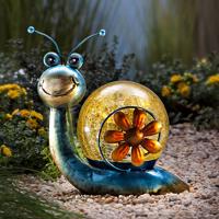 Ozdobte záhonek, terasu nebo parapet tímto roztomilým hlemýžděm. Každého si hned omotá kolem prstu. Večer se navíc rozsvítí. Žlutá koule vyrobená z craquelé skla je osvětlena šesti teplými bílými LED diodami.