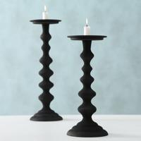 Sada 2 elegantních vysokých svícnů v matném černém provedení. Stanou se nepřehlédnutelným doplňkem interiéru, ale vynikne i na kryté terase. V balení 2 kusy svícnů včetně svíček. Materiál: hliníku v matně černé barvě Rozměry: Ø 15 x 35 a 44 cm