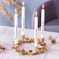 Vánoční atmosféru na slavnostně prostřený stůl dodá keramický talíř se 4 svícny zdobenými zlatými stromečky. Ubrus bude chráněn před voskovými skvrnami. Keramické svícny navíc můžete používat opakovaně s čajovými svíčkami. Rozměry: talíř Ø 23 cm, Ø svícnů 7,5 cm a výška svícnů 6, 9, 11 a 14 cm. Dodáváme bez čajových svíček.