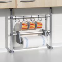 Potřebujete ve vaší domácnosti více úložného prostoru? Vyzkoušejte teleskopickou poličku, kterou lze umístit mezi pracovní desku a horní skříňku! S držákem na roli papírových utěrek a háčky na zavěšení hrníčků atd. Bez montáže, nastavitelná výška 48-80 cm. Stabilní konstrukce.