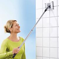 Vanu, dlaždice a všechny kouty snadno umyjete tímto profi koupelnovým mopem s teleskopickou rukojetí (vysunutelnou 65-95 cm). Díky výkyvnému kloubu a ploše s měkkým potahem z polyesterového mikrovlákna získáte zářivou čistotu a lesk. Potah lze snadno sejmout a prát - 2 kusy v balení. Materiál: plast, 100 % polyester. Rozměry: tyč 65-95 cm (výsuvná), stírací plocha 16 x 11 cm.