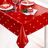 Zlaté hvězdy přímo na váš stůl! Krásný omyvatelný vánoční ubrus je vyroben ze směsi PVC nanesené na vysoce kvalitním textilním podkladu, díky tomu je extrémně odolný a vyznačuje se dlouhou životností. Na vyčištění stačí otřít vlažnou vodou s přidáním saponátu.