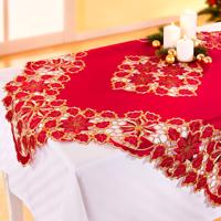 Vánoční hvězdy a listy tvoří motivy tohoto krásného ubrusu. Červená tkanina prošívaná zlatou vytváří pravou vánoční atmosféru. Lze prát na 30 °C. Materiál: 100 % polyester Rozměry: 85 x 85 cm