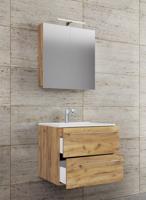VCM 3dílný koupelnový set "Badinos 2 zásuvky" 60cm | Se zrcadlovou skříňkou Dub medový