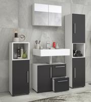 Kompletní sada koupelnového nábytku nabízí dostatek prostoru pro uložení koupelnového příslušenství. Skříňky splňují vysoký standard. Vyrobeny jsou z dřevotřískové desky s melaminovým povrchem pro obzvláště snadné čištění. Rozsah dodávky: 1x vysoká skříňka: 160 x 31 x 30 cm - otevřená police - dvoje velké dveře 1x zrcadlová skříňka: 41,5 x 60 x 12 cm - dvoje zrcadlové dveře 1x umyvadlová skříňka: 51 x 61 x 32 cm - dvě zásuvky s hladkým chodem - dveře 1x skříň midi: 93 x 31 x 30 cm - otevřená police - velké dveře + montážní materiál.