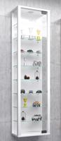 Skleněná vitrína Vitrosa mini s 8 variabilními skleněnými policemi. Dvířka, boční stěny i police jsou vyrobeny z bezpečnostního ESG skla. Obsahuje servisní balíček a kompletní montážní materiál. Přednosti: dřevěný rám dveře, boční panely, regály vyrobené z tvrzeného bezpečnostního skla rychlé a bezpečné upevnění na stěnu povrch korpusu se strukturou dřeva stabilní zadní stěna rychlá a bezpečná montáž na stěnu 8 nastavitelných polic (zatížení do 2,5 kg) Hmotnost: 27 kg.