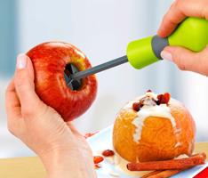Skvělé výtvory s náplní můžete připravit během chvilky a skvěle je prezentovat: Vykrajovače na zeleninu umožňují snadno a rychle vykrajovat lilek, cuketu, rajčata atd. Ideální také pro přípravu pečených jablek! Na rukojeť jednoduše nasadíte nástavec požadované velikosti, umístíte jej na hrot vrtáku a otočíte. Při vydlabávání vznikají ozdobné spirály, které můžete použít k dalšímu zpracování nebo zdobení. 5dílná sada s rukojetí a 4 připojitelnými nástavci (Ø 1,8 cm, 2,4 cm, 3 cm, 4 cm) - rukojeť se silikonovým kroužkem pro bezpečné uchopení - lze mýt v myčce nádobí.
