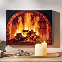 Tento okouzlující krb oživí dlouhé zimní večery a vytvoří útulnou atmosféru. A vyhnete se drahé instalaci skutečného krbu, přikládání i čištění - o prostorových a bezpečnostních aspektech nemluvě... Zde máme důmyslnou alternativu: obraz na plátně s romantickým krbem je skvělým doplňkem pro váš domov během dne, ať už v obývacím pokoji nebo ložnici, na chodbě nebo v domácí kanceláři. Ve večerních hodinách pak poskytuje integrované LED osvětlení živé náladové osvětlení. Šlehání plamenů je simulováno překvapivě realisticky a zajišťuje hřejivý pocit domova. Nástěnný LED obraz Krb přinese radost také jako dárek . • motivu vytištěný na plátno a natažený na dřevěném rámu • MDF deska s robustním závěsem na zadní straně • motiv podsvícen 10 LED diodami s teplým bílým efektem: simuluje blikající plameny • 6hodinový časovač • provoz na baterie (2x AA baterie, nejsou součástí dodávky), přepínač na boku Rozměry: 40 x 30 cm