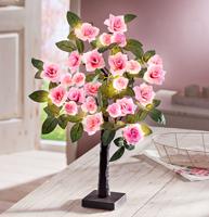 Úžasně romantický růžový strom s atmosférickým světlem. 24 růží je vyrobených z jemného textilního materiálu a každá je osvětlena bílou LED. Větvičky lze jednotlivě tvarovat. Jistě oceníte funkci 6 hodinového časovače. Provoz je na baterie 3x AA (nutno zakoupit zvlášť). Vhodné pouze do interiéru. Rozměry: výška 60 cm.