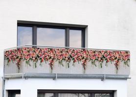 Zástěna na balkon "Muškáty" Chraňte své soukromí! Zástěna na balkon zabrání nechtěným pohledům kolemjdoucích a tak i s okny do ulice si můžete dopřát soukromí a klid při posezení na balkóně či terase. Barevná umělohmotná fólie odolná proti povětrnostním vlivům i UV záření. Můžete ji použít rychle a snadno díky vazačům provlékaných do 24 kovových ok, které jsou součástí. Rozměry: 85 x 500 cm.