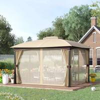 Zahradní altán s dvojitou střechou Outsunny, hnědo-béžový