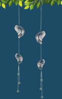 Elegantní jemná girlanda je určena k zavěšení na okno, lustr, ale i na balkon či krytou terasu, kde upoutá na první pohled. Dva lístky tvořeny jemnými lamelami jsou doplněny řetízkem s korálky 1 kus. Materiál: kov, sklo, Rozměry: celková délka 81 cm. 1 kus