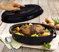 Haushalt international Smaltovaný pekáč na pečení s poklicí, Ø 38 cm, černý